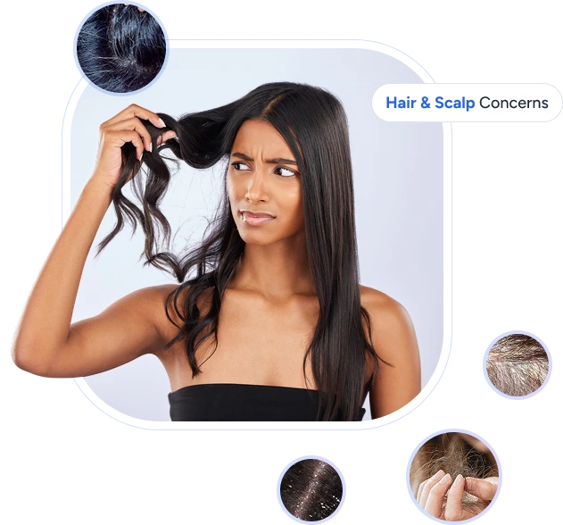 Take a clear selfie or scalp photo and tell us your skin and hair concerns—dark circles, hair fall, dryness, dandruff, pigmentation, wrinkles, and more.