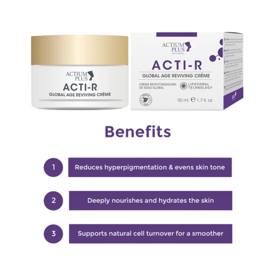 Turn back the clock with Actium Plus ACTI-R Global Age Reviving Creme, a dermatologist-formulated anti-ageing powerhouse designed to smooth wrinkles, refine texture, and restore youthful radiance.