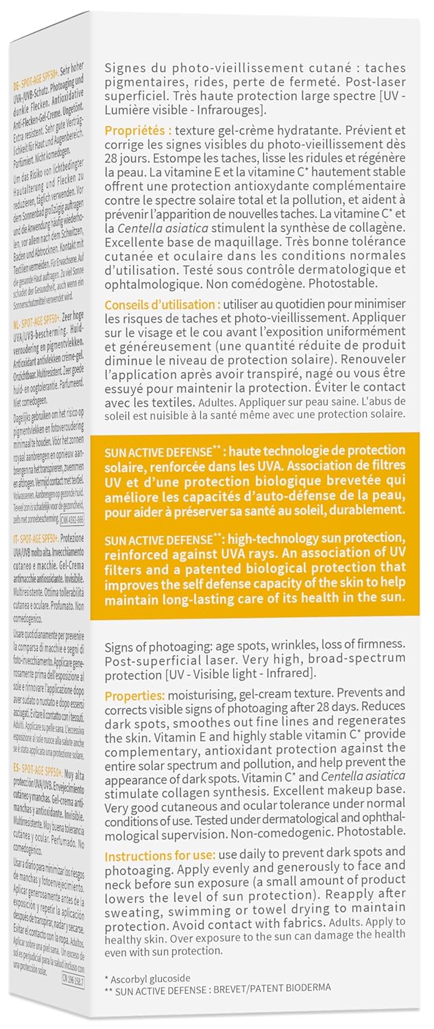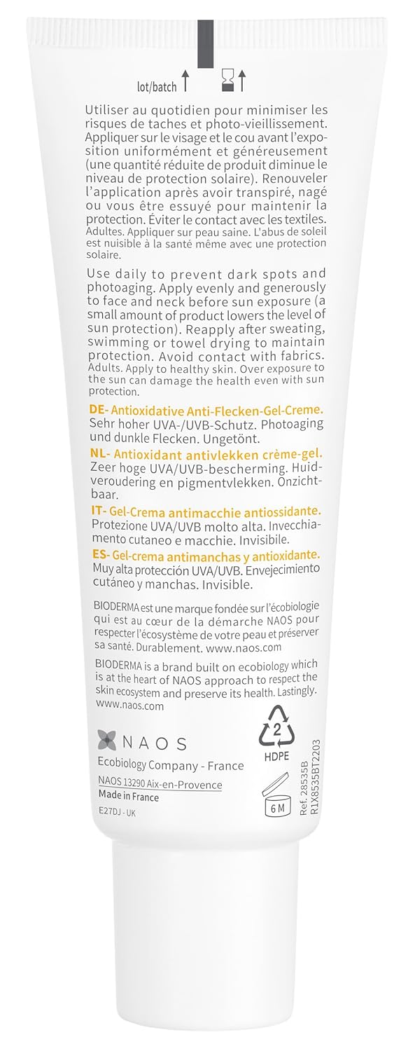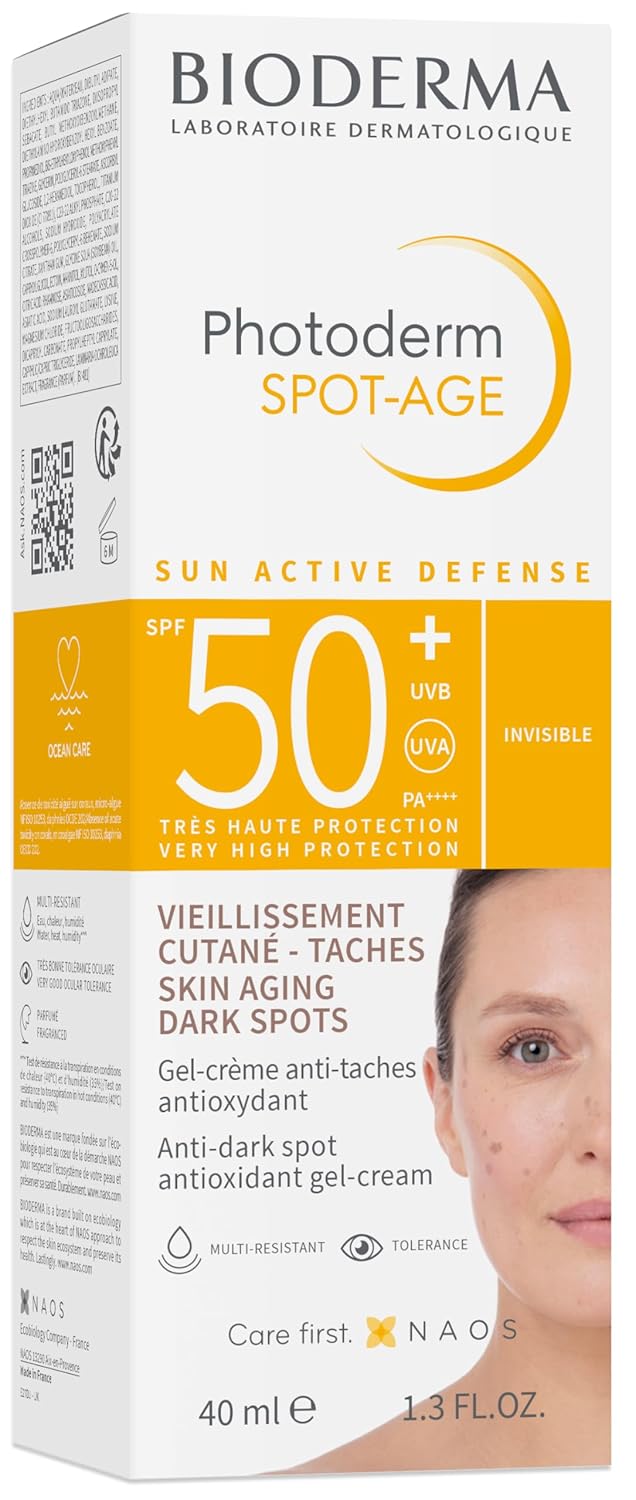 Defend your skin from sun damage and premature ageing with Bioderma Photoderm Spot Age SPF 50+, a dermatologist-formulated antioxidant gel-cream sunscreen. Specially crafted for dark spots, wrinkles, and photo-ageing concerns, this invisible, non-greasy sunscreen delivers broad-spectrum UVA/UVB, visible light & infrared protection while correcting existing signs of ageing.