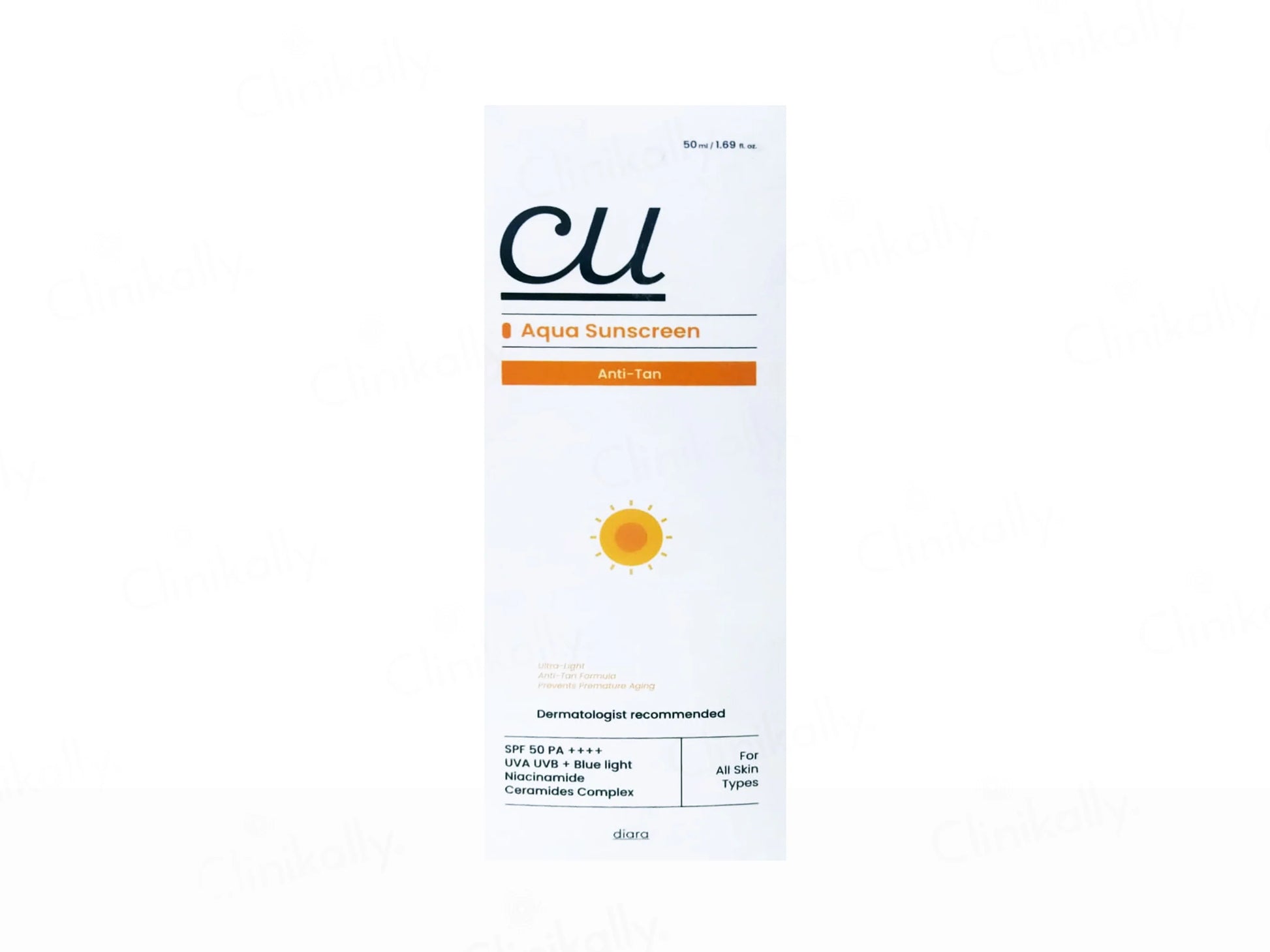 Diara CU Aqua Anti-Tan Ultra-Light Sunscreen SPF 50 PA++++ 50ml