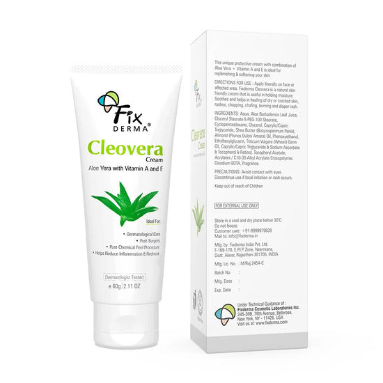 Give your skin the comfort and care it deserves with Fixderma Cleovera Cream, a dermatologically trusted moisturizing & soothing formula designed to calm irritated skin, reduce inflammation, and restore long-lasting hydration.
