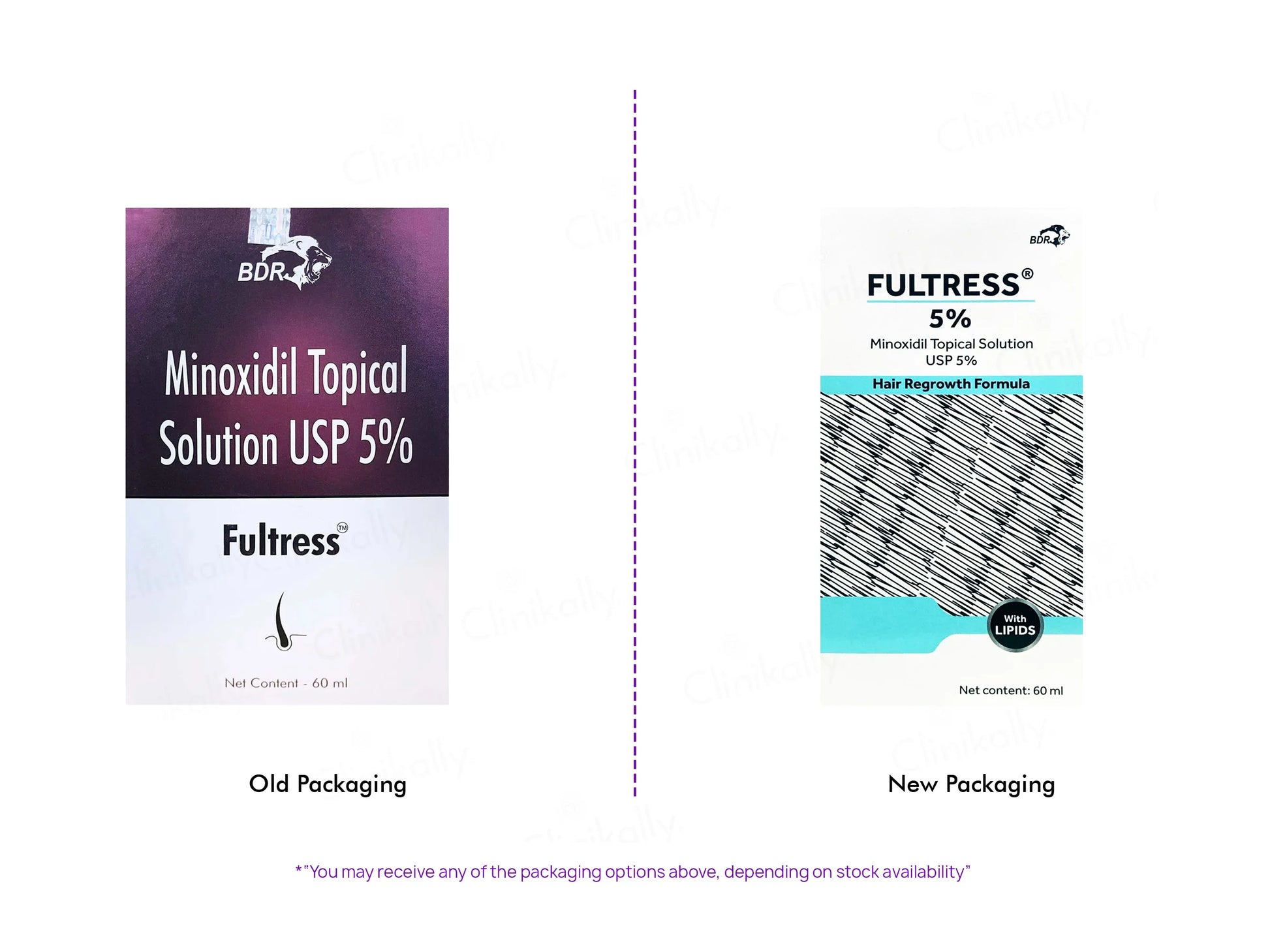 Regain confidence with Fultress 5% Topical Solution, a dermatologist-recommended formulation designed to treat androgenetic alopecia, reduce hair thinning, and stimulate new, stronger hair growth. Powered with a clinically backed duo — Minoxidil (5%) + Finasteride (Topical) — this advanced solution targets the root cause of male pattern baldness by improving scalp circulation and reducing DHT levels.