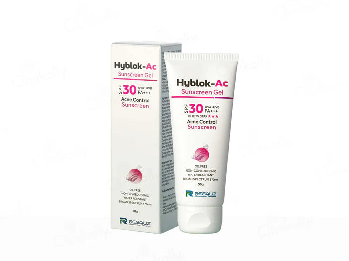 Defend your skin against harmful sun rays while keeping oil and acne in check with Hyblok-AC Acne Control Sunscreen Gel SPF 30 PA+++. This dermatologist-recommended sunscreen is specially formulated for oily and acne-prone skin, combining broad-spectrum UVA/UVB protection with sebum-control action for clear, matte, and healthy-looking skin all day long.