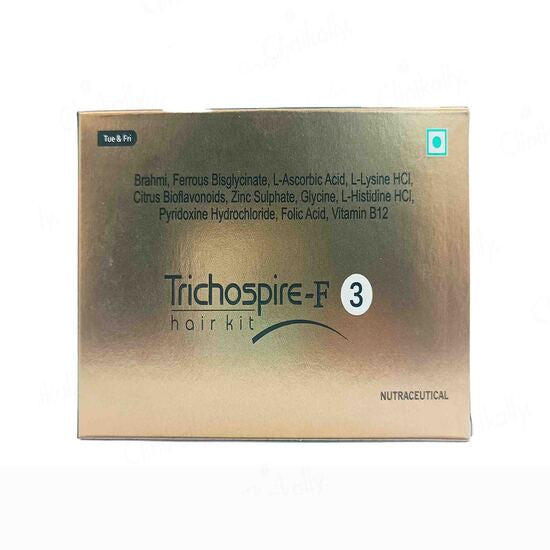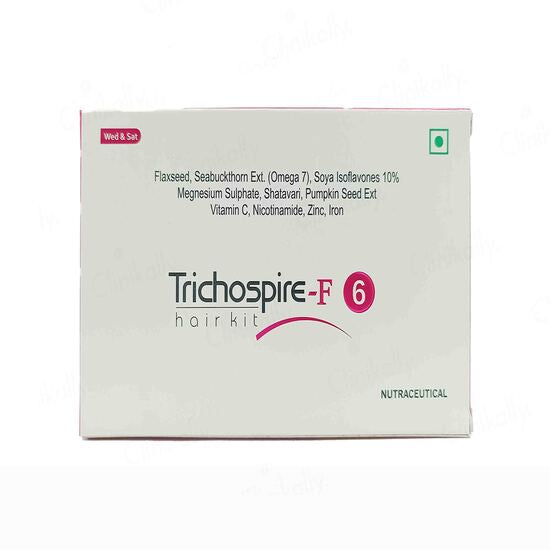 Powered by essential nutrients like Algae Calcium, Soy Isoflavones, Omega-7 and Flaxseed Oil, Trichospire-F helps rebalance hormonal fluctuations, reduce hair fall, and restore natural shine — making it your complete inside-out hair care solution.